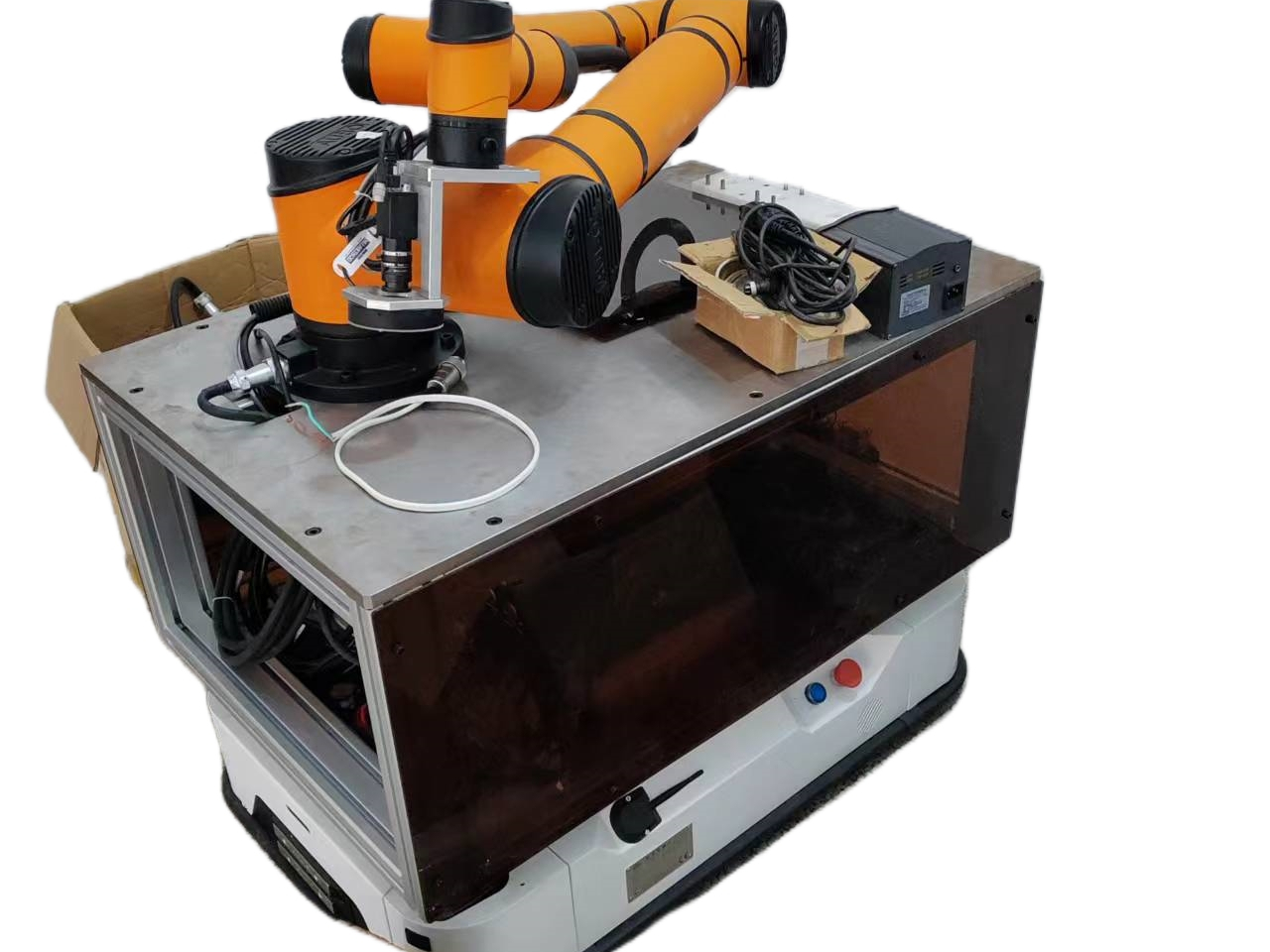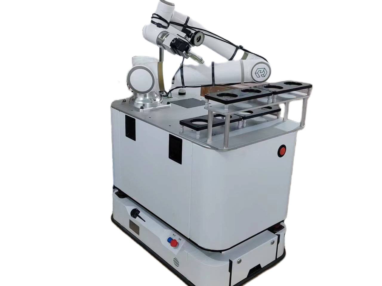 复合AGV是一种集成AGV和通用工业机械手两项功能为一身的。复合型AGV是手脚并用,将两种功能组合在一起。